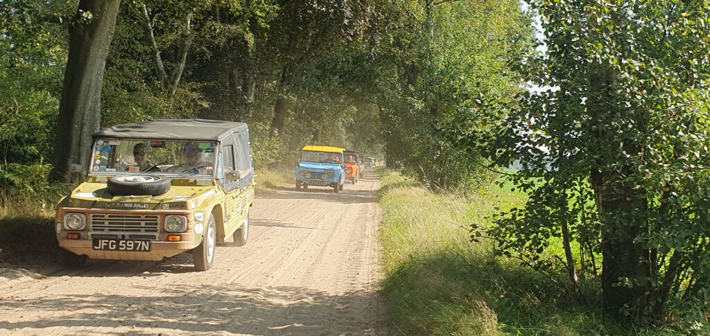 We hebben geboft met het weer. Zowel op de Zaterdag als op de Zondag was het heerlijk weer om met de Mehari open top of zonder zijpanelen te rijden. Aan het einde van het weekend hadden we een lekker kleurtje op onze toet.