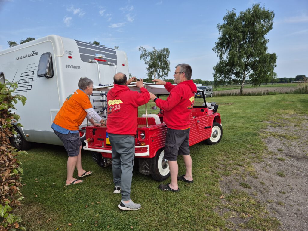 Het vertrek was vanaf camping de Koehoorn te Deurne, dezelfde startlocatie als vorig jaar. Tenminste, dit was voor de meeste van ons want enkele leden (we noemen geen namen, maar weten allemaal wie het zijn 😀) hadden niet zo goed opgelet en stonden paraat op camping de Koehorn – ergens in Zeeland. Ze vroegen aan de campingboer waar is de rest? Waarop die zei ik weet nergens niets van. Met haastige spoed zijn deze 2 heren daarna alsnog met een rotvaart richting Deurne gekomen en hebben zich rond de middag bij de rest van de groep aangesloten.