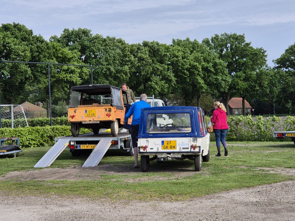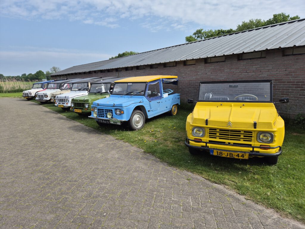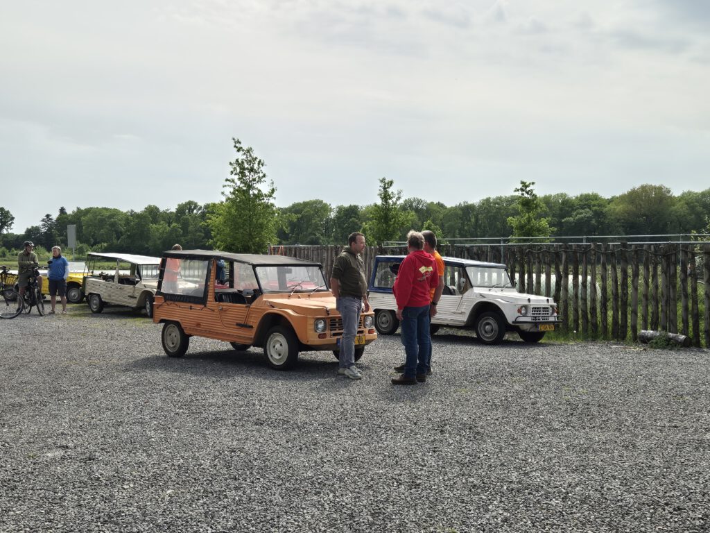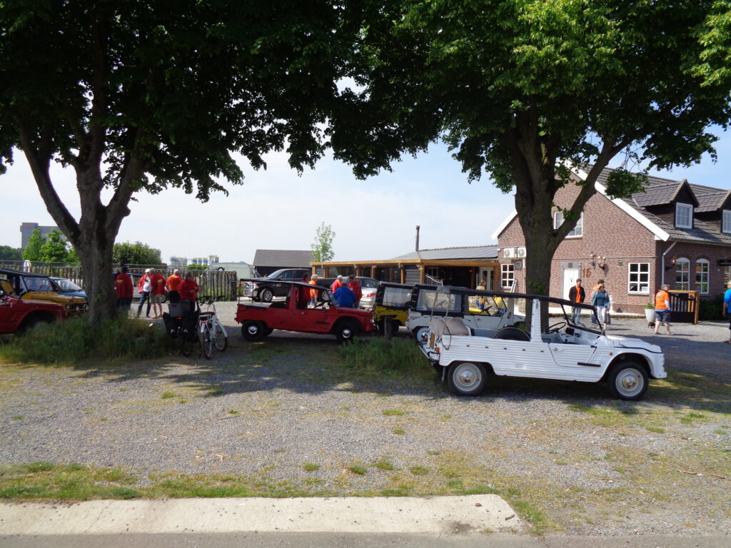 Omdat we nu een leuke camper hebben (en veel tijd) hebben wij ervoor gekozen om al op Vrijdag aan te komen en op Zondag te vertrekken. Zoals Paco zei: “Voor alle pensionada is elke Méhari rit nu een Méhari weekend”. Die vrijdagavond was er al een heel gezellig een leuke groep enthousiastelingen bij elkaar. De Zaterdagmorgen begon ook goed, één voor één kwamen de leden binnengedruppeld. Het was een leuke verassing dat er leden waren die we niet verwacht hadden. Hebben jullie je ingeschreven? Heb ik dit gemist? Jawel hoor, gisterenavond om 11 uur. Tja dat hadden wij dus niet meer meegekregen. Maar ach ja – er is altijd genoeg en hoe meer zielen hoe meer vreugd. Na het genot van een lekker kopje koffie en natuurlijk een stukje Limburgse vlaai zijn we vertrokken.